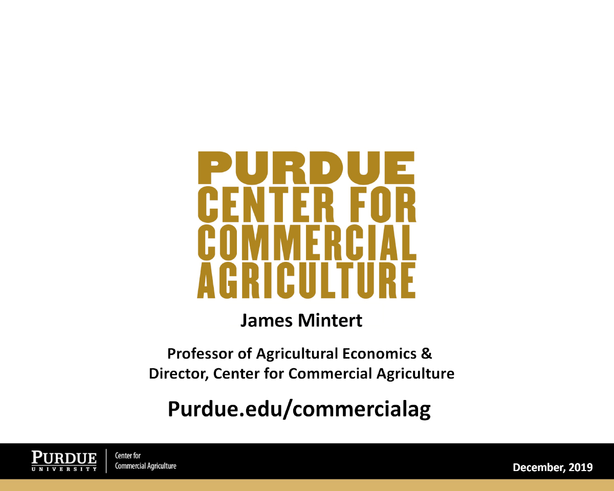 2019 Ag Policy Forum, hosted by the Indiana Soybean Alliance & Indiana Corn Growers Association in Noblesville, Indiana, presentation by James Mintert.
