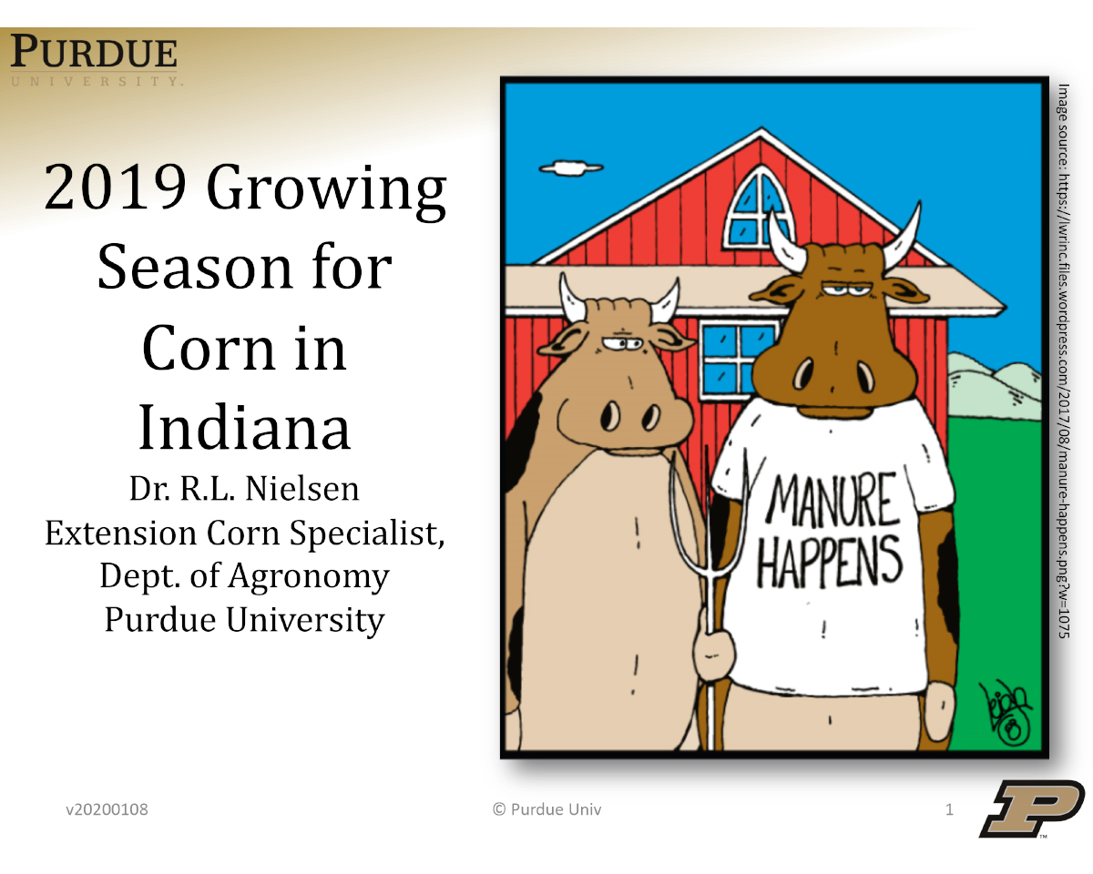 Top Farmer Conference slidedeck presentation by Robert Nielsen, Professor & Corn Specialist, Department of Agronomy. A review of what took place during 2019 and what can be learned that can be applied to your corn production plans for 2020.