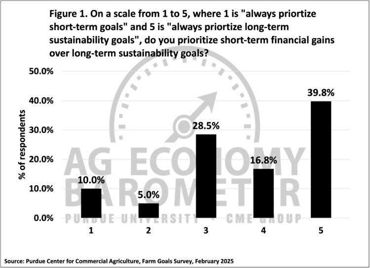 Both short-run and long-run planning are important to farms. Some farm goals, such as profit maximization, may be short-term in nature. Other farm goals, such as conservation, and asset and management transitions are more long-term in nature. A recent survey of 400 U.S. producers was conducted in late February 2025 to assess individual farm goals, producer sentiment, farm growth, succession plans, sustainability and risk preferences, resilience, and adoption of conservation practices. Farm goals included the following: stable income, conservation, profit maximization, farm transfer, and debt reduction. A previous article focused on farm goals and their tradeoffs (Langemeier, 2025). This article focuses on short-run and long-run planning.