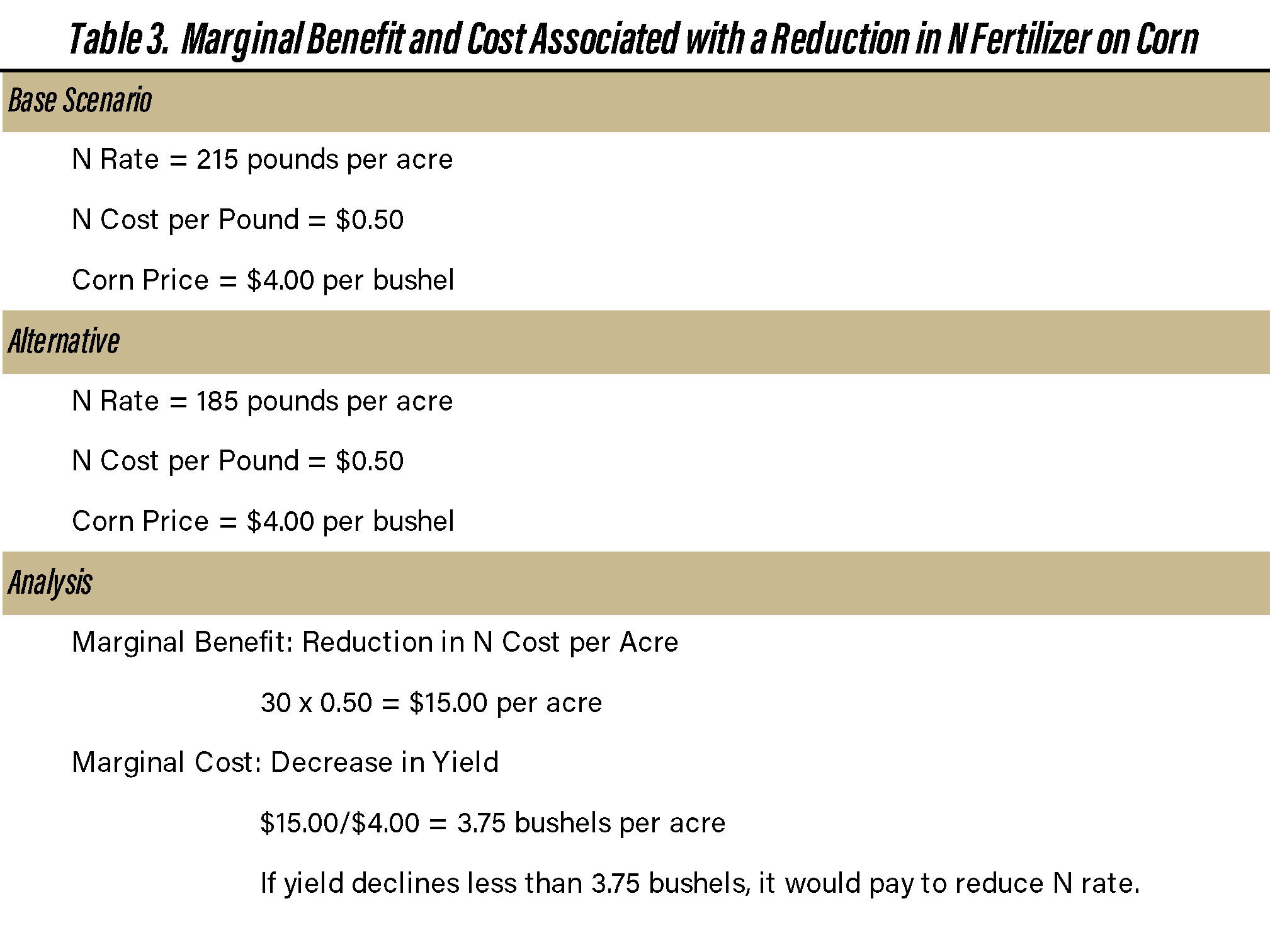 Table 3. Marginal Benefit and Cost Associated with a Reduction in N Fertilizer on Corn