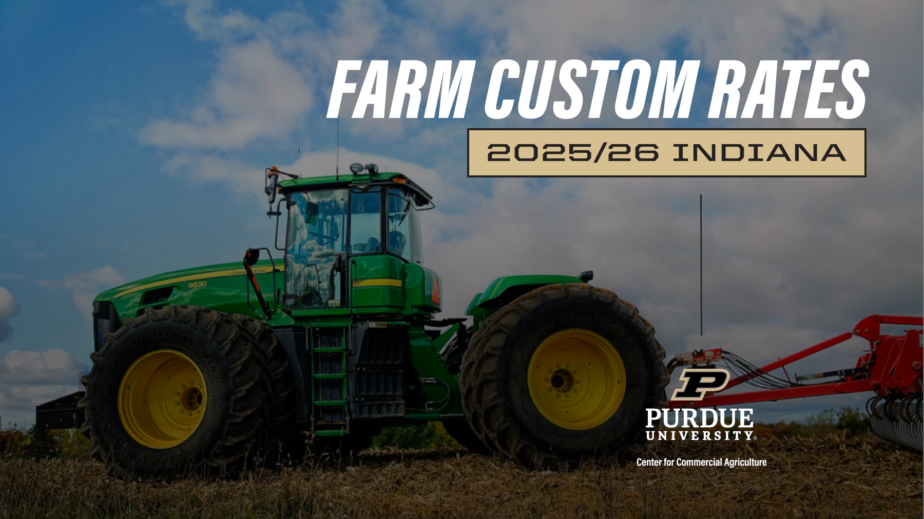 A trusted resource to compare for hire service rates in land preparation, fertilizer and chemical application, planting, harvesting, hauling, and machinery. Indiana farmers, farm owners, custom operators, and professional farm managers are surveyed every two years by Purdue.