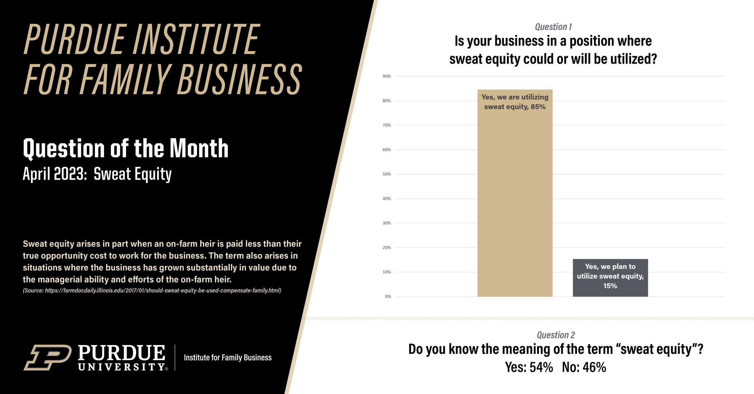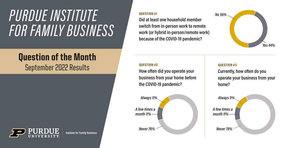 Each month the Purdue Institute for Family Business asks a question related to running a family business. The results are displayed below with an explanation of how these topics can have an impact on small businesses.