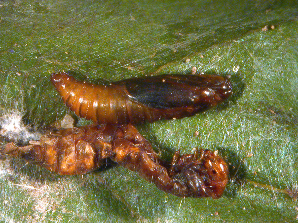 Strawberry leaf roller pupa and larval skin