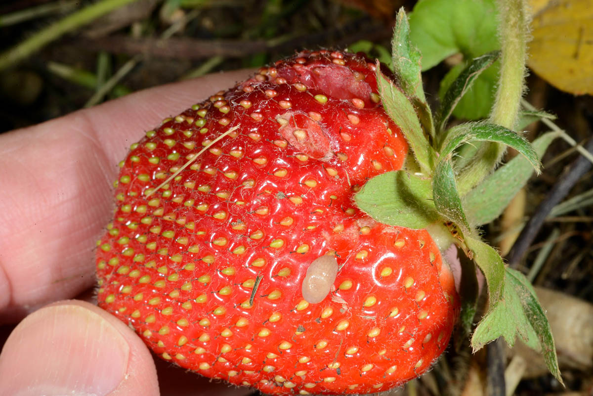 Strawberry slug feeding on strawberry