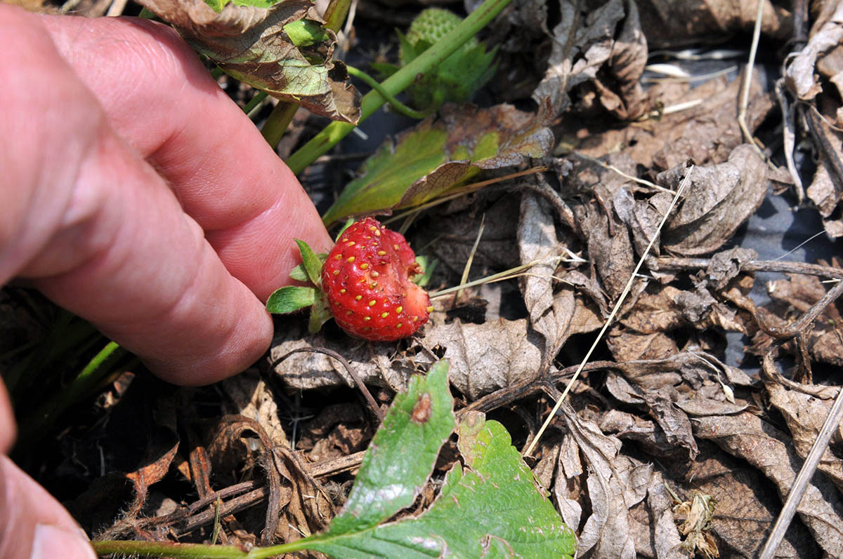 Variegated cutworm damage on strawberry