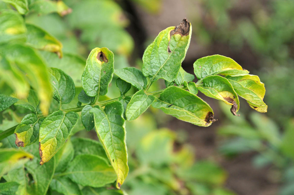 Potato leafhopper damage on potato branch