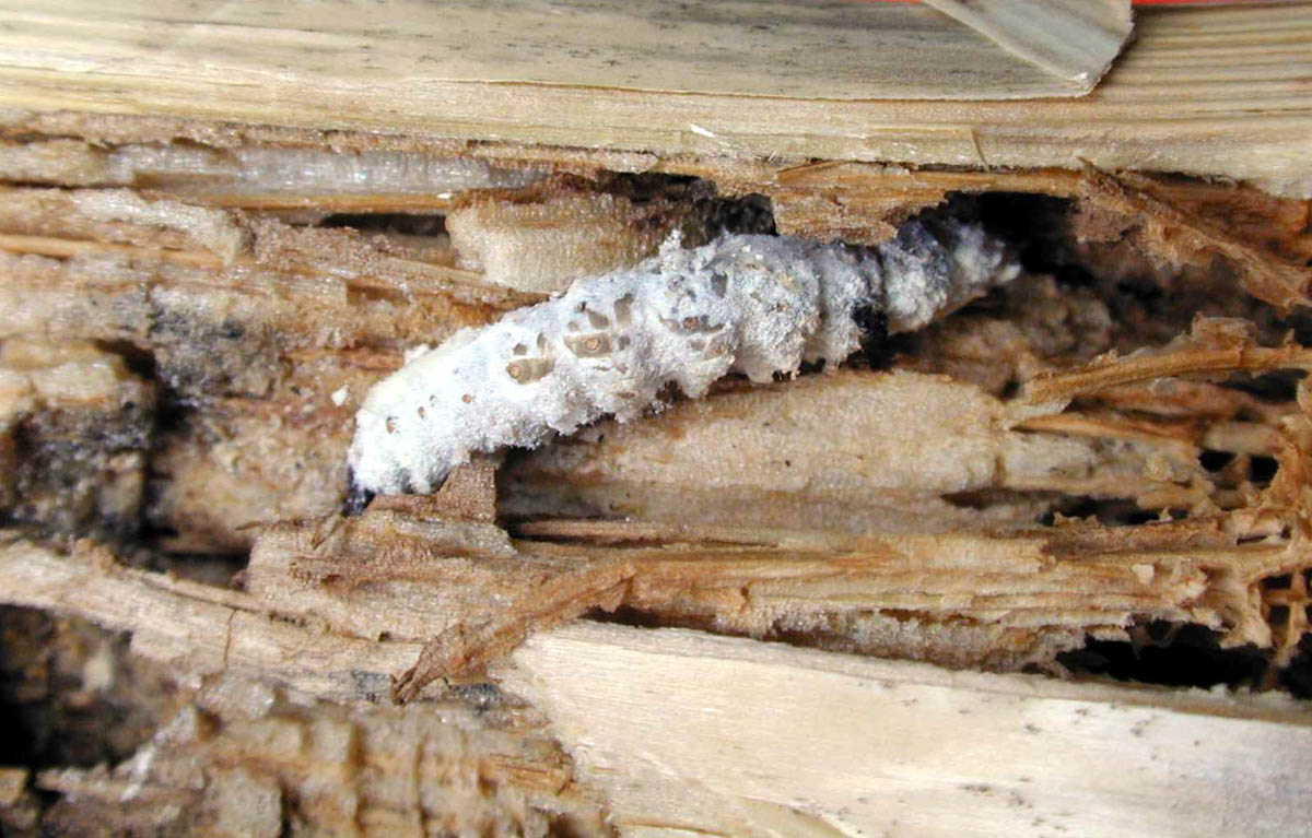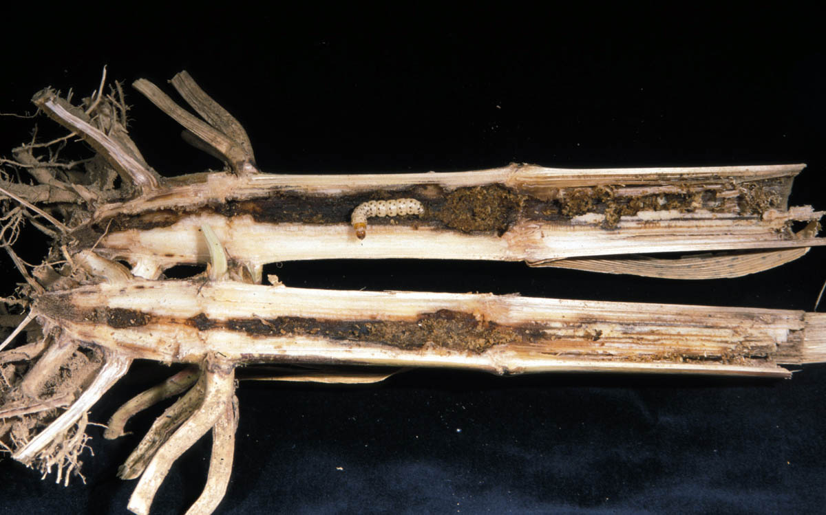 Southwestern corn borer larva tunnel in stalk