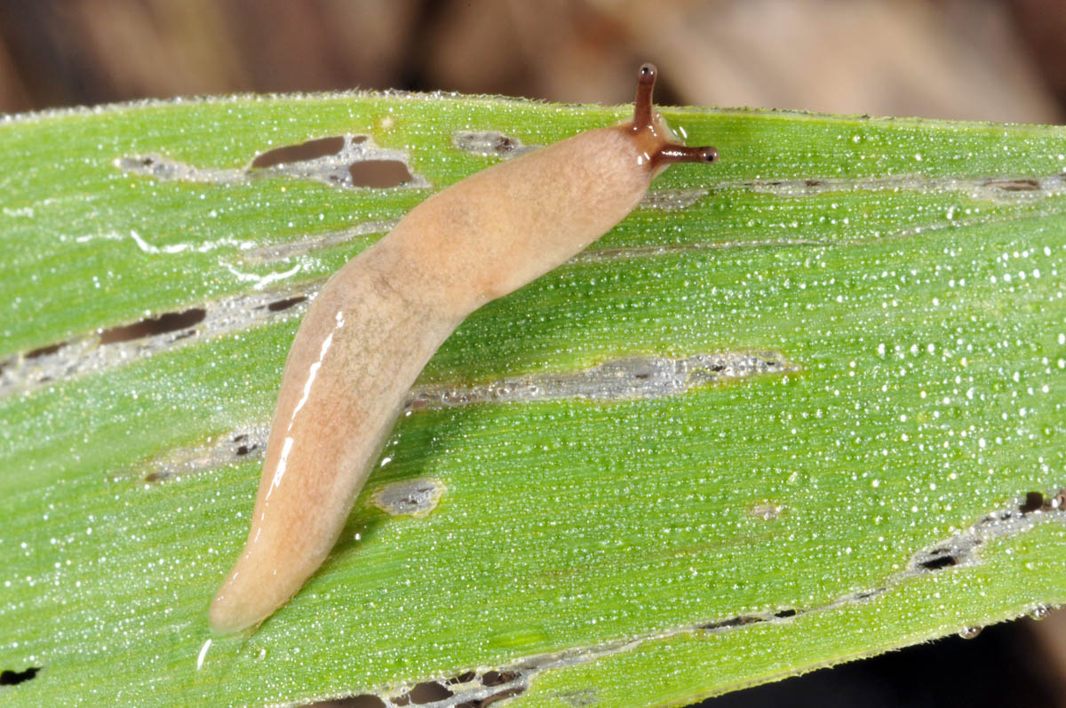 White slug damage on corn leaf (close up)