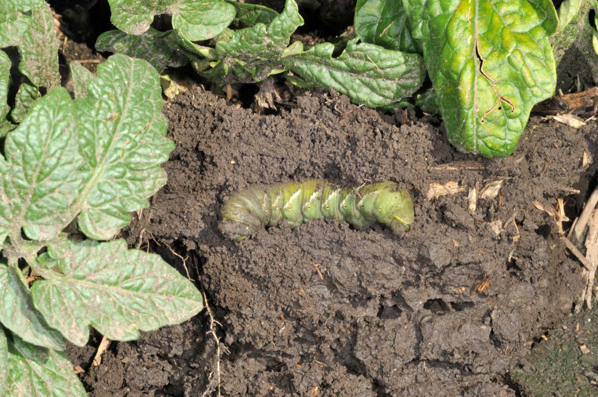 Pre pupa hornworm on soil