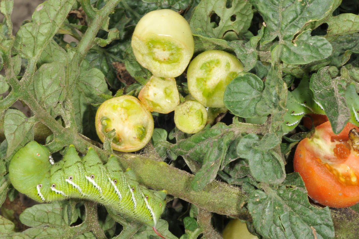 Tomato defoliation and fruit damage by hornworm