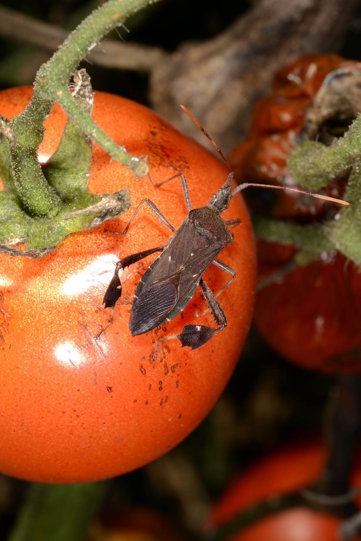 Leaf footed bug on red tomato