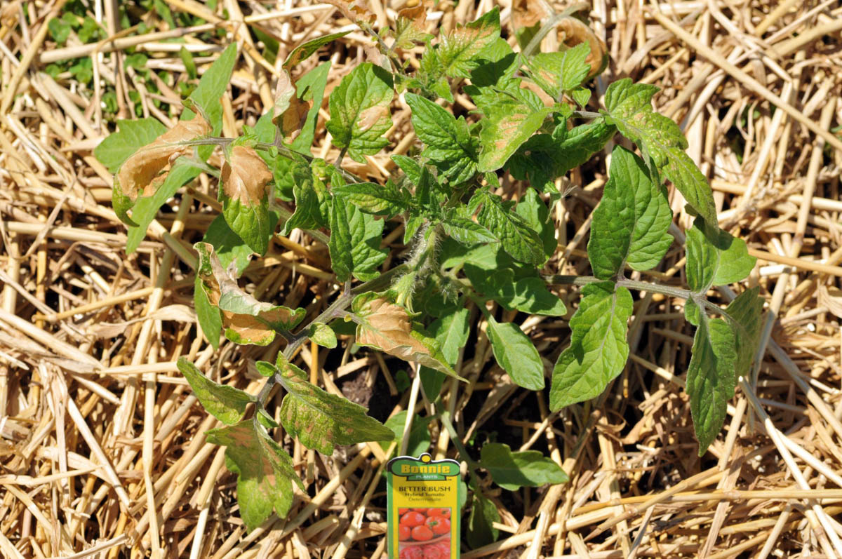 Damaged tomato plants by stalk borer