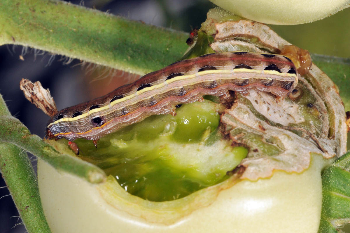 Yellow striped armyworm feeding on grape tomato