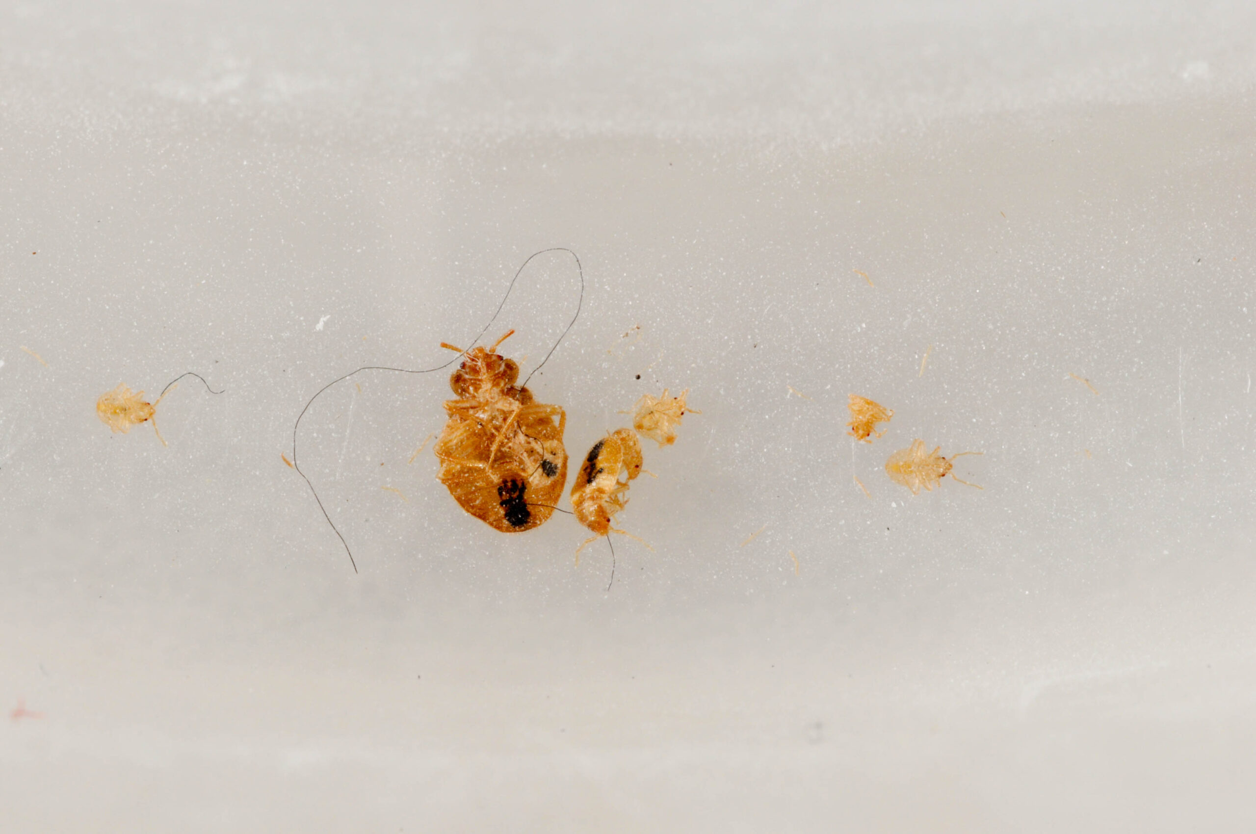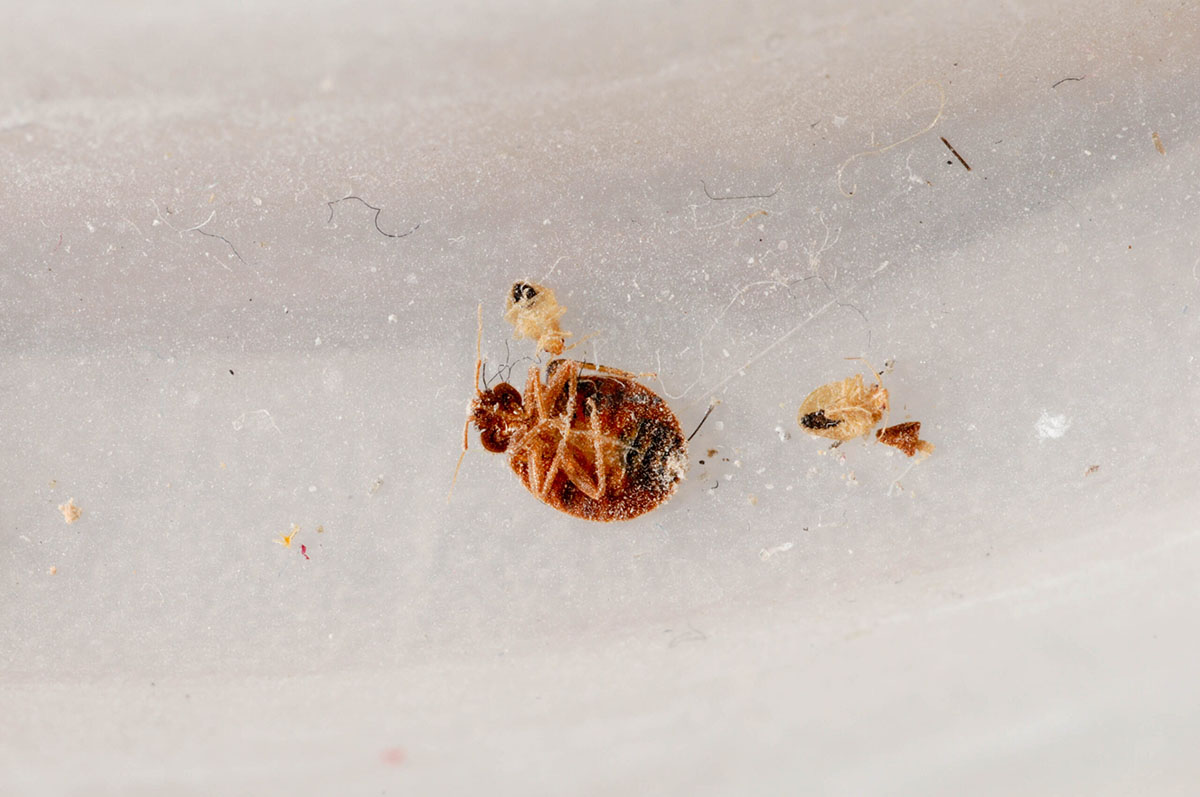 Captured bed bug adult and nymphs
