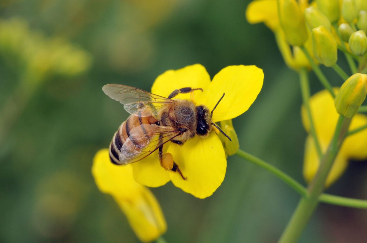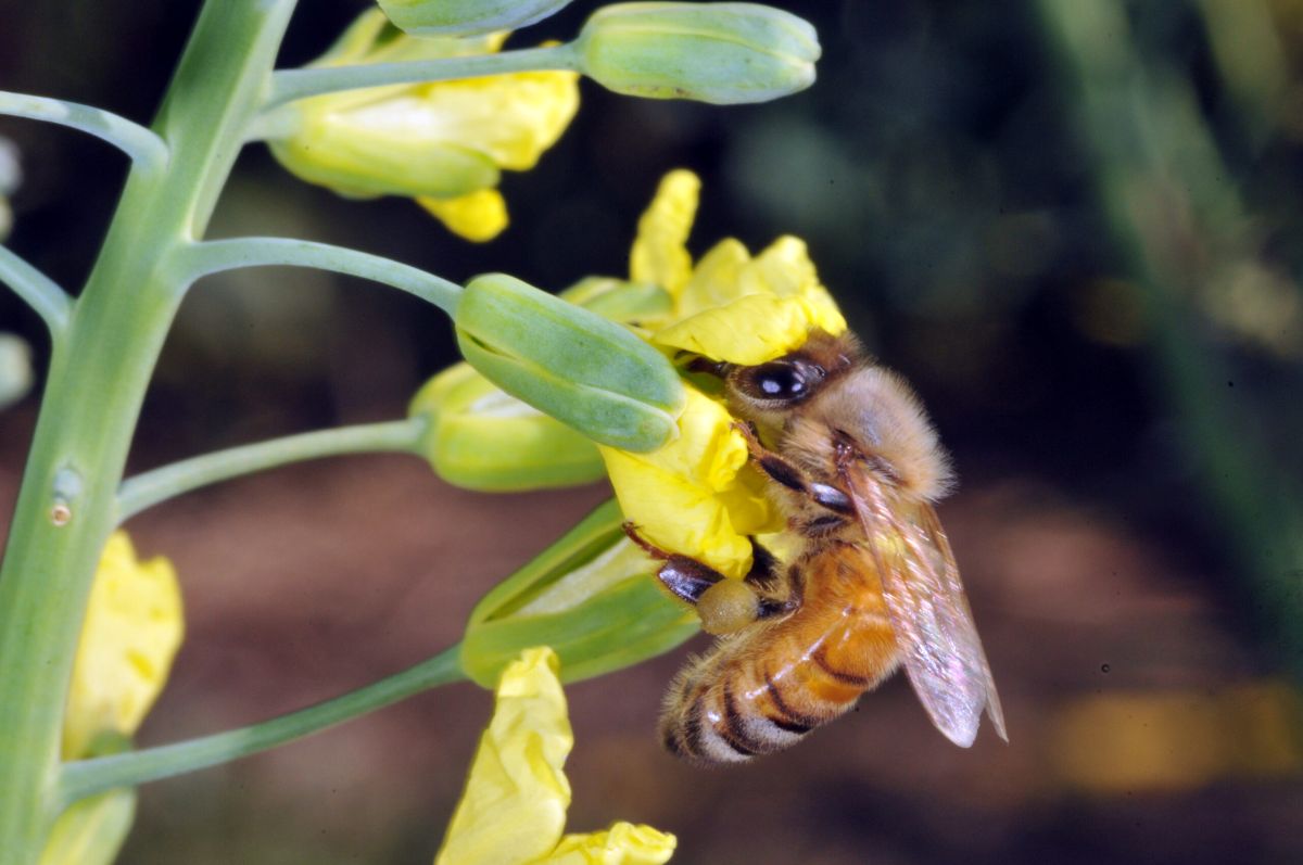 Honey bee on crucifer flower