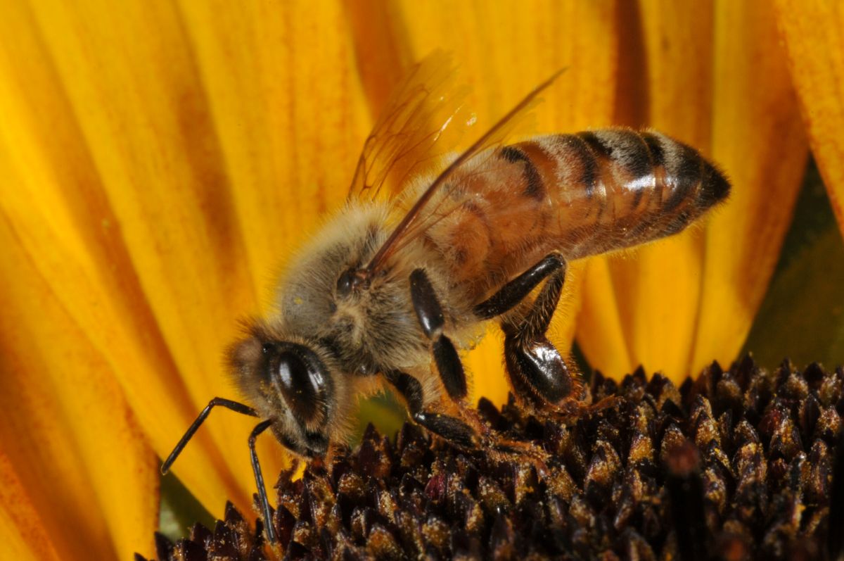 Honey bee on sunflower (close view)