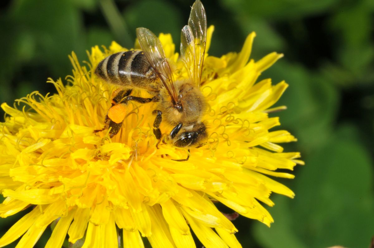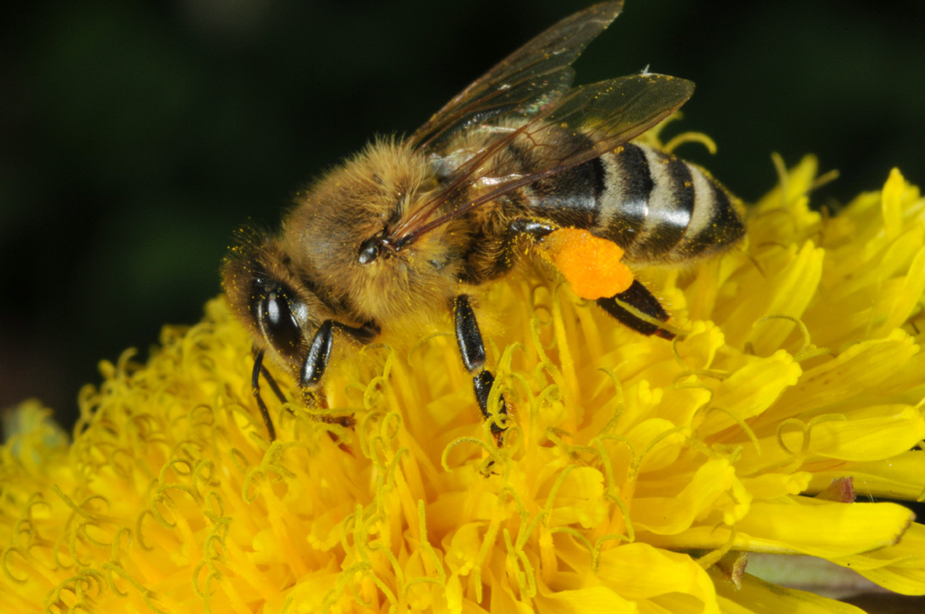 Honey bee on dandelion