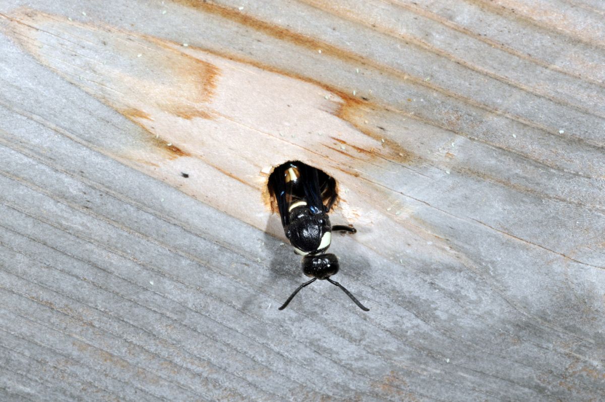 Mason wasp exiting hole