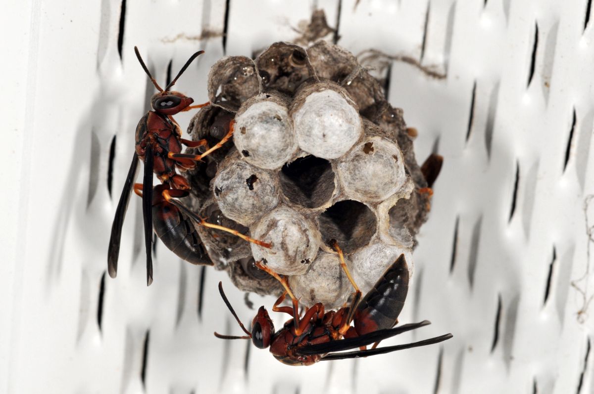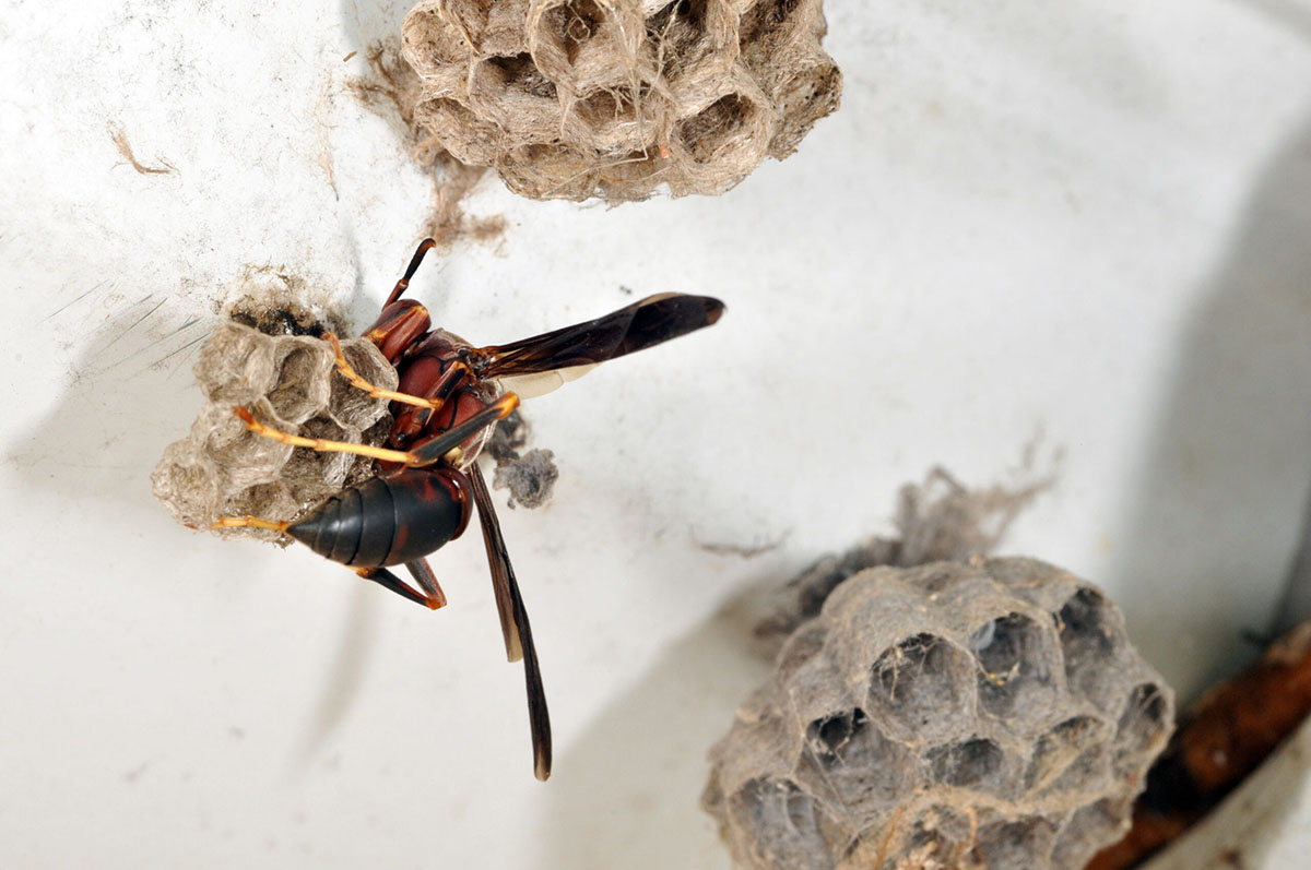Paper wasp building nest