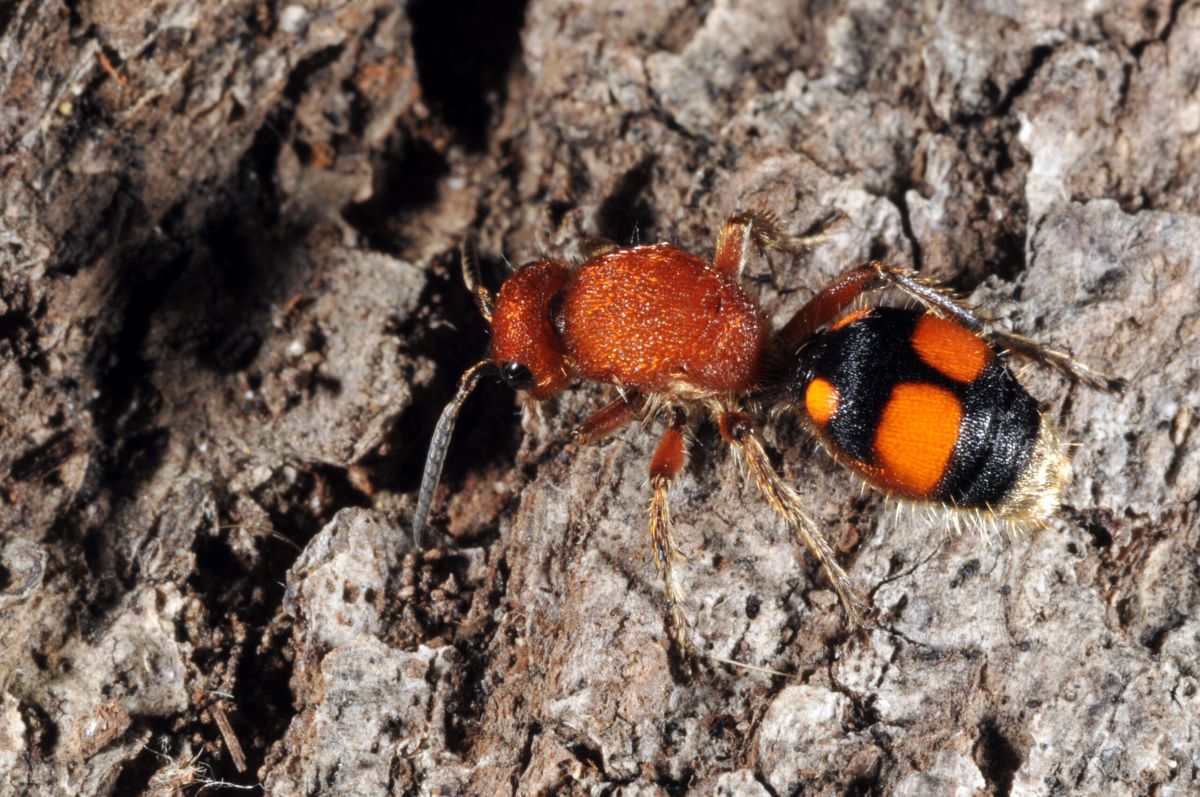 Velvet ant on bark