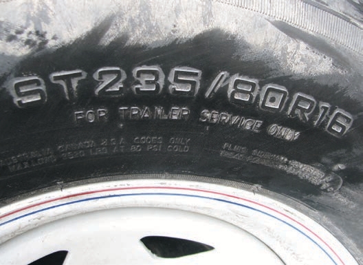 Tires for trucks, cars, trailers, and wagons are built differently based on to the job they do. A trailer tire is not designed to steer — instead, it follows the lead of the truck. Trailer tires have reinforced sidewalls meant to carry heavier weights. Passenger vehicle tires are built for comfort, handling, and turning. Passenger vehicle tires are not built to hold heavy loads and should never be used on trailers. Tires have valuable information right on them — maximum air pressures, load weights, and speed rated. One of the more important pieces of information is the type of vehicle or implement for which the tire is manufactured. Tires with a P are passenger vehicle tires, with an LT are for trucks, and with an ST for trailers.