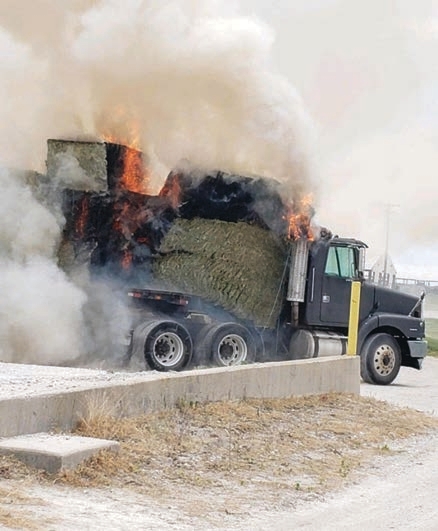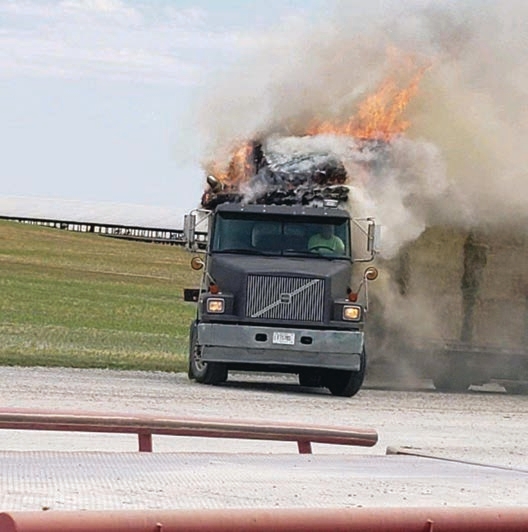 “We lost everything — hay, truck, trailer, and almost, my dad. I did not know it at the time that the black smoke I was seeing from the farm was our truck on fire. The cause of the problem was that we didn’t strap the bales down allowing the bales to contact the hot exhaust.”