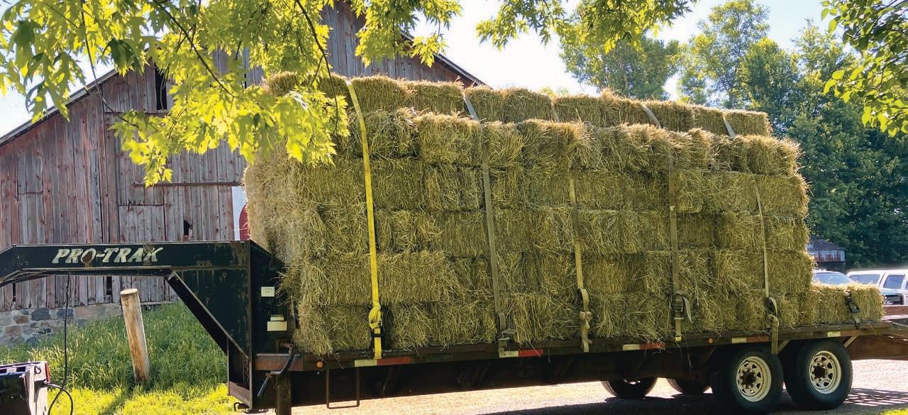 At first glance, transporting hay and straw should be an easy task — bale it, stack it on a trailer, and move it from one point to another. However, pulling hay on the road (even for just a few miles) is anything but easy. We discussed many topics in this publication — straps, slow-moving vehicle signs, hitch pins, and tires. All are part of what it takes to safely transport hay from the field or barn to its destination.