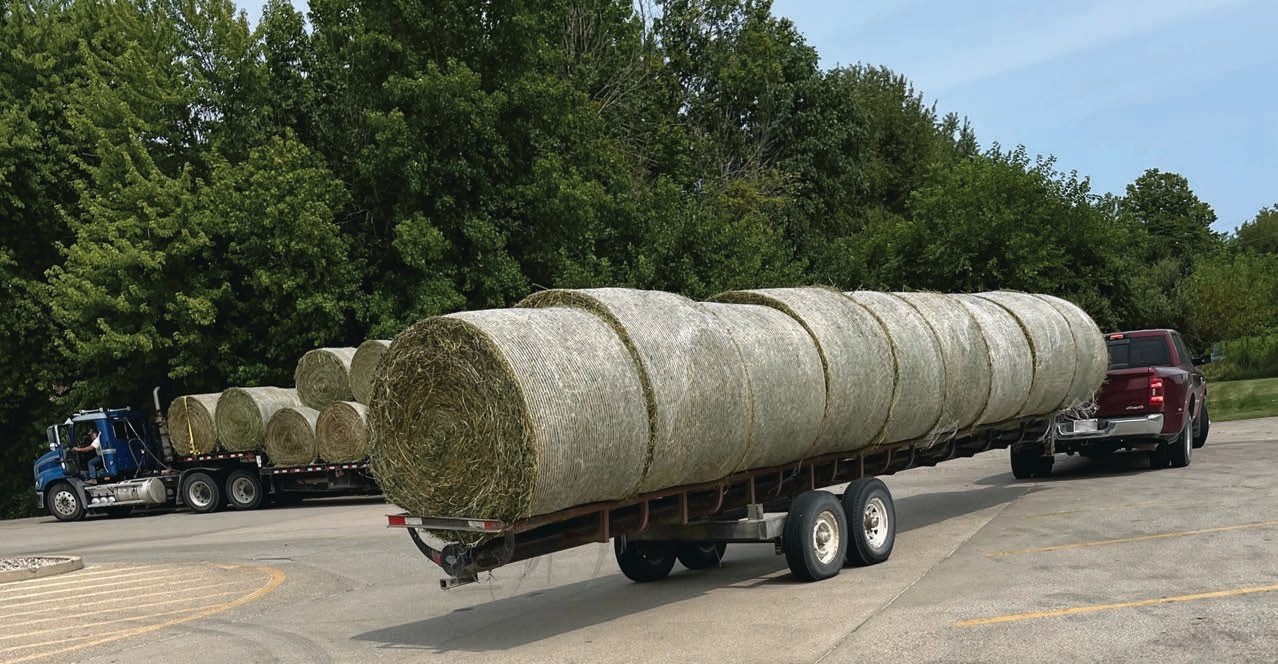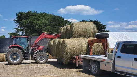 One important market for forage products is selling hay to those who raise beef and dairy cattle, horses, goats, and sheep but lack sufficient land to produce their own hay. Producers may grow hay close to the barn on land they own or lease or many miles away from a farm. Not only does work get done more efficiently when the hay is grown closer to the barn, it also creates an ideal situation in which hay can be moved from the field to the barn via farm lanes. This leaves no chance for interaction with public traffic. Transporting hay on public roads changes the whole dynamic of forage production.