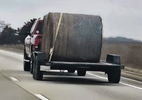 “I saw a large round bale roll off a trailer that was heading toward me about a month ago. “It was two hundred yards or so away and heading toward me. I saw the truck shimmy a little. That hint caused me to slow down. That saved me.