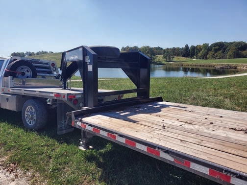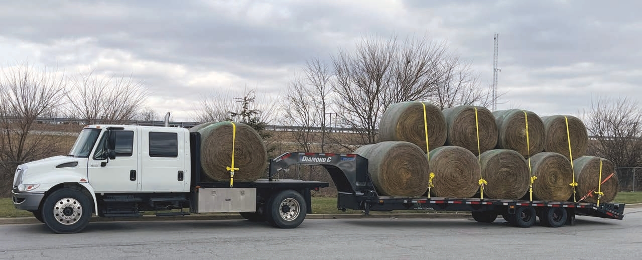 Keeping round bales on the second level from rolling off the truck when moving can also be a challenge, especially when a driver suddenly stops, turns abruptly, or accelerates quickly. Unsecured loads can potentially roll forward into the truck or backward off the trailer.