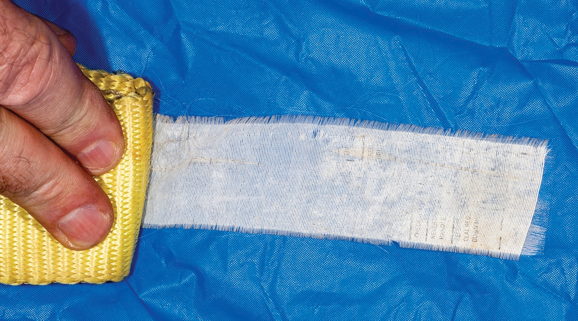 DAMAGE IS CUMULATIVE ACROSS THE SURFACE OF THE WEBBING THROUGHOUT THE TENSIONED AREA