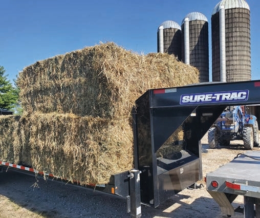 For many, using slow-moving farm wagons on roads is inefficient if they have to move hay more than a few miles. Farmers with significant hay acreage who use public roads often invest in semi-tractor-trailers equipped with lights, brakes, heavy duty suspensions, larger tires, and turn signals. To cut down on the backand-forth travel from field to barn or customer, the trailers are designed to haul 350 to 500 (or more) small square bales. While it is more efficient, these semi tractor-trailers increase the costs of operation beyond just equipment cost. Additional costs include fuel, insurance, labor, repairs, and special equipment to load and unload.