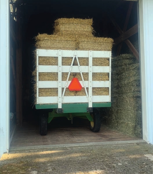 Before harvesting season and transporting hay begin in earnest, make sure all wagons and implements have slow-moving vehicle signs that are clearly visible from the rear. One serious mistake we see is when a wagon has a slow-moving vehicle sign, but it is hidden by following wagons without visible signs. The best approach is to attach slow-moving vehicle signs to every wagon to ensure you properly notify approaching drivers. This is an important part of covering your legal liabilities.