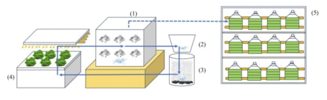 Fish stocking density is a key factor in aquaponics, affecting nutrient availability, water quality, and overall system productivity. While research has focused on improving productivity, the potential inclusion of microalgae as an additional subsystem remains largely underexplored. Microalgae offer added benefits, including nutrient recovery, water quality improvement, and production of high-value biomass. This study evaluated the effects of varying tilapia (Oreochromis niloticus) stocking densities (10, 20, 30, and 40 kg m−3) on the production and nutritional composition of Chlorella vulgaris and lettuce (Lactuca sativa cv. Muir) in a partially decoupled aquaponics system. Higher stocking densities (30–40 kg m−3) resulted in significantly higher fish biomass, lettuce yield, and algal biomass. Increased fish stocking densities resulted in higher nutrient concentrations leading to higher plant growth and algal productivity. C. vulgaris cultivated at higher stocking densities exhibited increased crude protein concentration and a more favorable essential amino acid profile, particularly for lysine and methionine. However, a trade-off was observed as higher stocking densities led to a reduction in crude fat and certain fatty acids, including stearic and oleic acid. The findings indicate that stocking density and the resulting nutrient flows through subsystems influence algal nutrient concentrations, which can be strategically managed to optimize algal composition, with higher densities favoring protein-enhanced biomass and lower densities supporting lipid accumulation. This study highlights the potential of integrating algae as a value-added subsystem in aquaponics to enhance productivity and diversify outputs. Read more here!