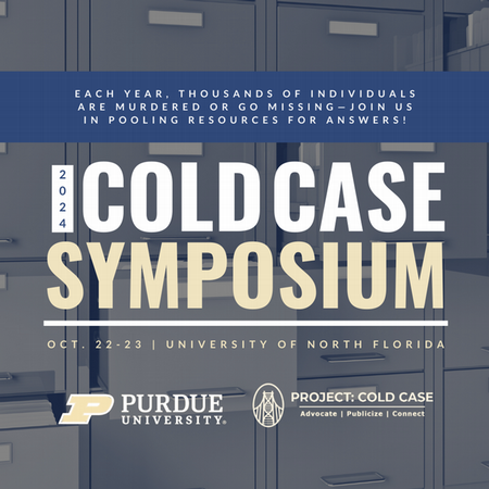 We invite you to join us again for the Cold Case Symposium on October 12, 2023 at Purdue University to learn from experts and leave with action to support the families seeking answers in unsolved cases.