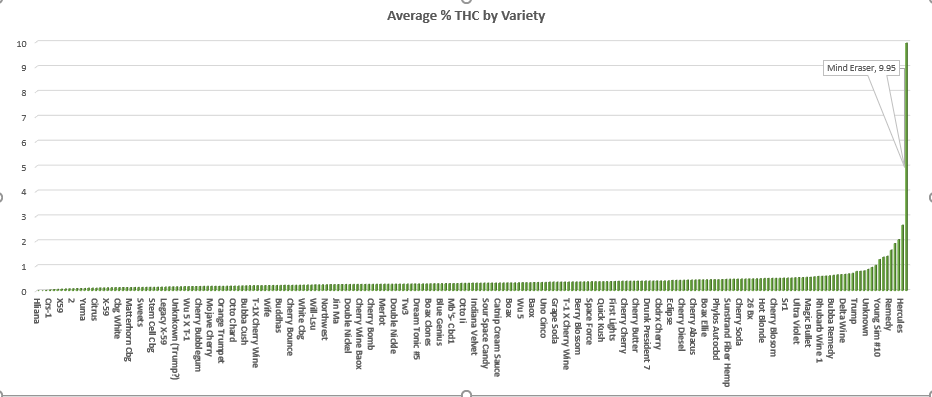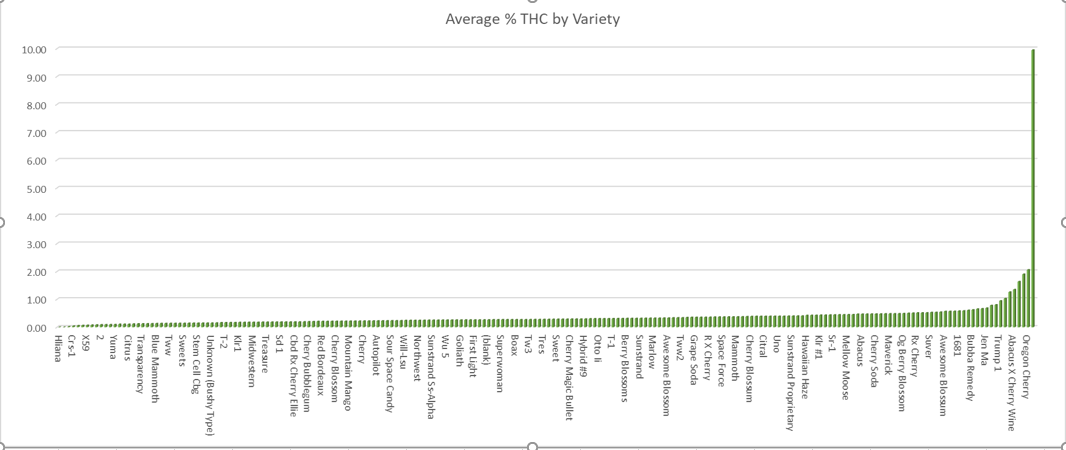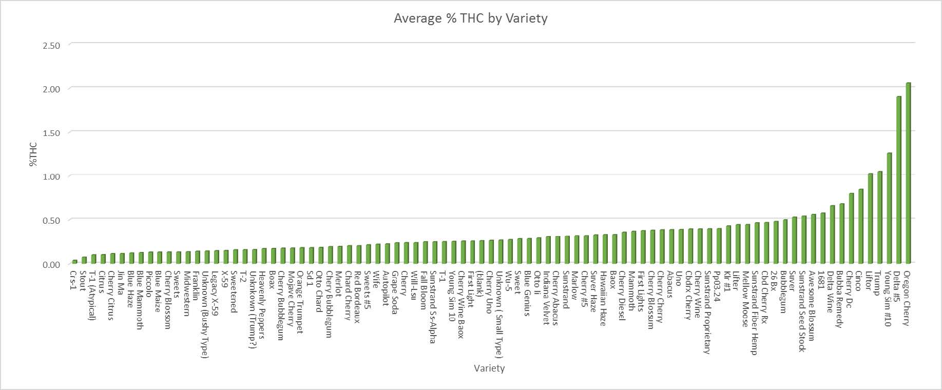 2019 and 2020 THC testing by variety data is included below. We also have included the link to the Midwest Cannabinoid Database. This database is a collaborative effort with the University of Illinois, University of Wisconsin-Madison, Michigan State University, Purdue University, Rock River Lab and Pride Analytics. If you have certain varieties you want to produce please refer to all these sources to better understand what THC content will look like.