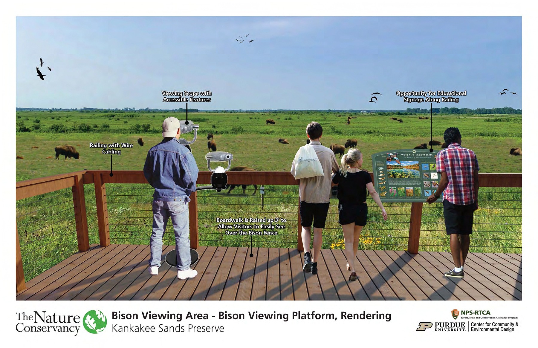 “The partnership with Purdue University and the National Park Service was really important,” Moran said. “Ultimately, it generated a concept design report that TNC was able to use to show our partners, our members, our donors what our ideas were and how we could welcome more people to the site. It generated more support and built a lot of enthusiasm and engagement around the project.”