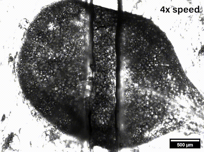 In Davis’ lab at the University of Delaware they grow the Arabidopsis seeds sent by Szymanski until they are sprouts with two leaves, called cotyledons. These circular leaves are only a couple millimeters across and are pulled apart by micromechanical grips underneath the microscope.