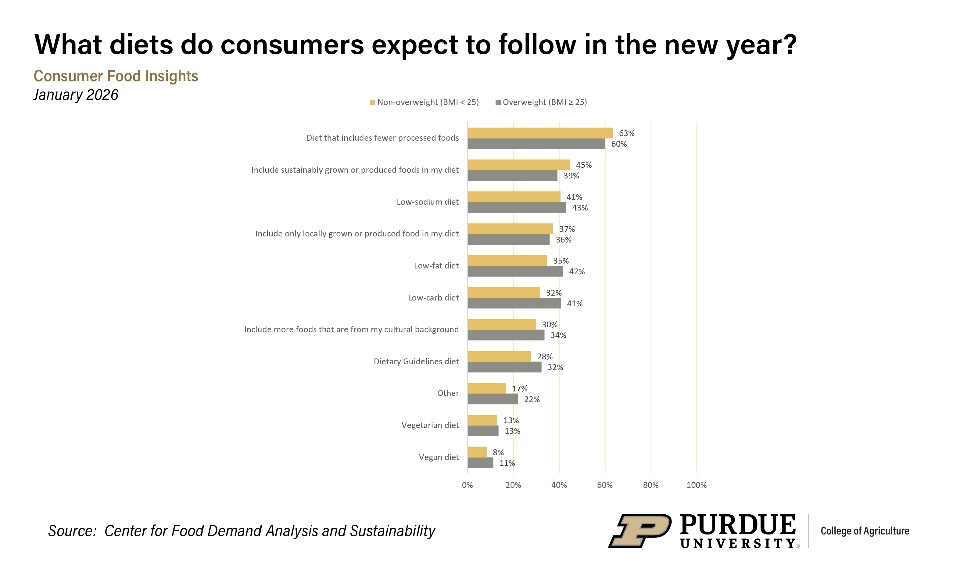WEST LAFAYETTE, Ind. — The January Consumer Food Insights Report (CFI) sought to determine whether those classified as overweight — using the Center for Disease Control and Prevention (CDC)’s measurement of a body mass index of 25 or above — are more or less satisfied with their diets than those who are not classified as overweight.